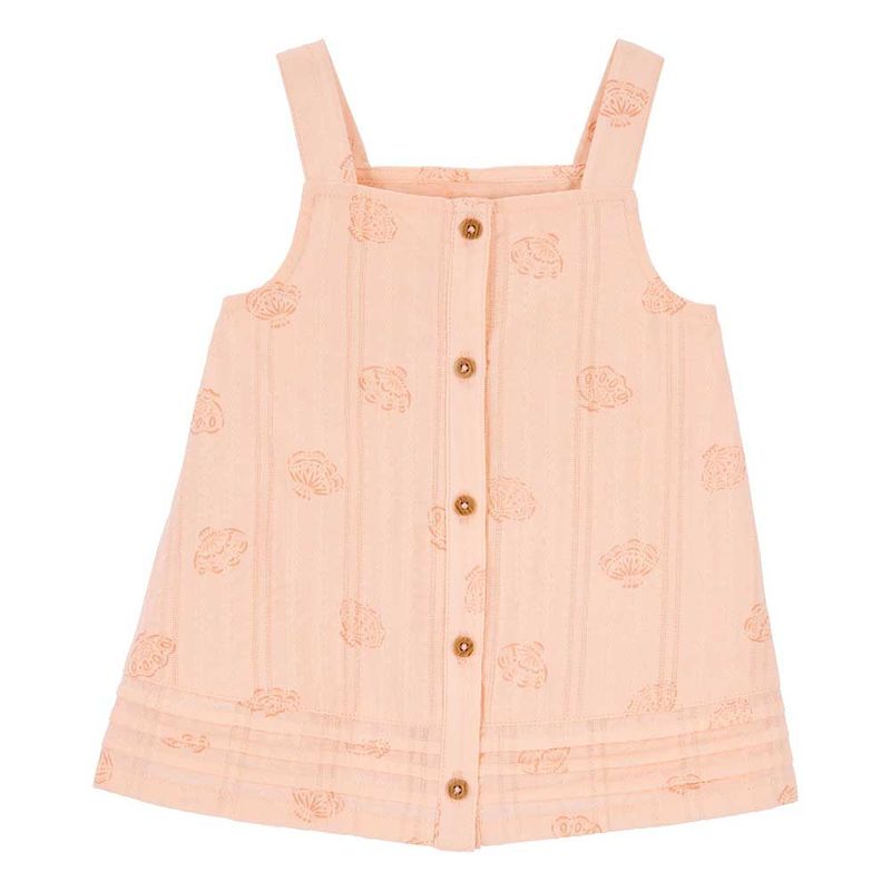 Blusa con estampado floral para niña. Sin mangas y detalle de botones delanteros no funcionales. 100 % algodón. Importado. Lavable a máquina.