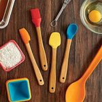Mrs. Anderson's Mini juego de herramientas para cocinar y preparar porciones más pequeñas y fácil limpieza incluso con los alimentos más pegajosos. Hecho de bambú con silicona; resistente al calor hasta 440 grados Fahrenheit; antiadherente para una liberación rápida de alimentos. El juego incluye una mini cuchara (8.35 x 1.3 pulgadas), espátula (8.35 x 1.54 pulgadas), espátula delgada (8.35 x 1.1 pulgadas) y cepillo para untar (8.58 x 1.3 pulgadas). Seguro para utensilios de cocina antiadherentes; no raya superficies delicadas; se puede colgar y compacto para un fácil almacenamiento. El bambú es una alternativa de rápido crecimiento y totalmente sostenible a los materiales tradicionales para una vida más sostenible; lavar a mano en agua tibia y jabón.
