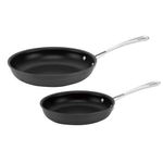 La construcción de núcleo de aluminio anodizado duro se calienta rápidamente y extiende el calor de manera uniforme. Elimina los puntos calientes. Superficie de cocción antiadherente reforzada para una cocción más saludable, liberación duradera de alimentos y fácil limpieza. Mantén un agarre sólido con las asas siempre frescas, siempre seguras, remachadas profesionalmente y contorneadas a tu mano para mayor comodidad. Úselo en la estufa, en el horno o debajo del asador. Apto para horno hasta 500 °F y congelador para un fácil almacenamiento de alimentos. Incluye dos sartenes un sartén de 22 cm y un sartén de 28 cm.
